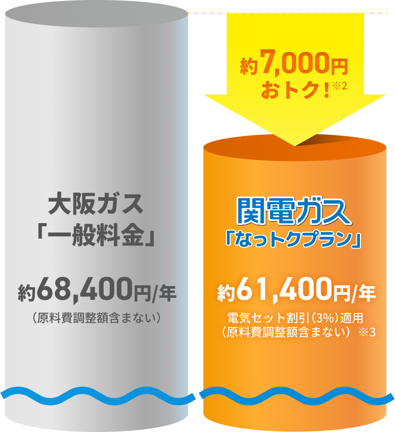 メリット金額については、電気セット割引を含む金額となります。ただし、 2025年12月1日以降は電気セット割引廃止のため適用されず、同時にガス料金自体を3%相当値下げいたします。詳しくはこちら。